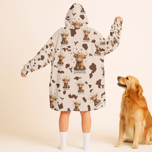 Just A Girl Who Loves Highland Cow Cute Personalized Custom Name Blanket Hoodie