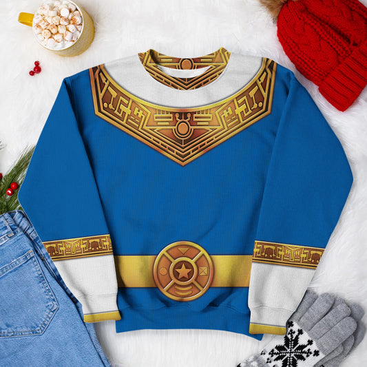 Blue Power Rangers Zeo Ugly Christmas Custom Imitation Knitted Sweatshirt