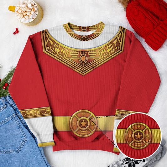 Red Power Rangers Zeo Ugly Christmas Custom Imitation Knitted Sweatshirt