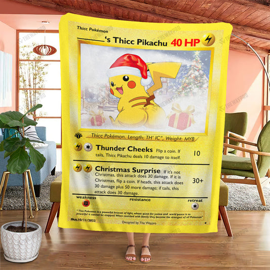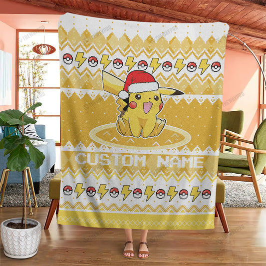 Christmas Thicc Pikachu Custom Name Gift Soft Blanket