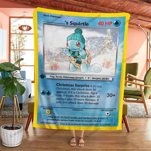 Christmas Squirtle Custom Name Gift Soft Blanket