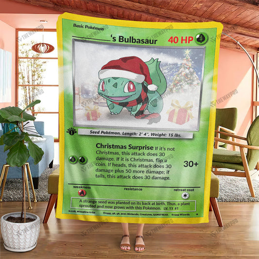 Christmas Bulbasaur Custom Name Gift Soft Blanket