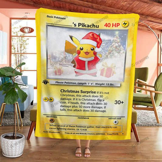 Christmas Pikachu Custom Name Gift Soft Blanket
