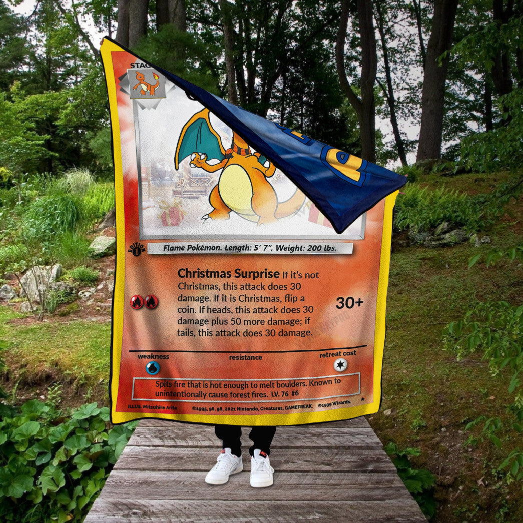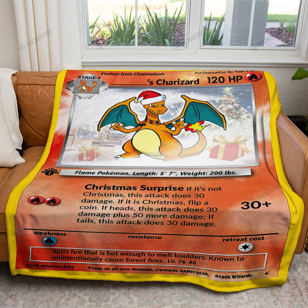 Christmas Charizard Custom Name Gift 2-Side Printed Thicken Soft Blanket