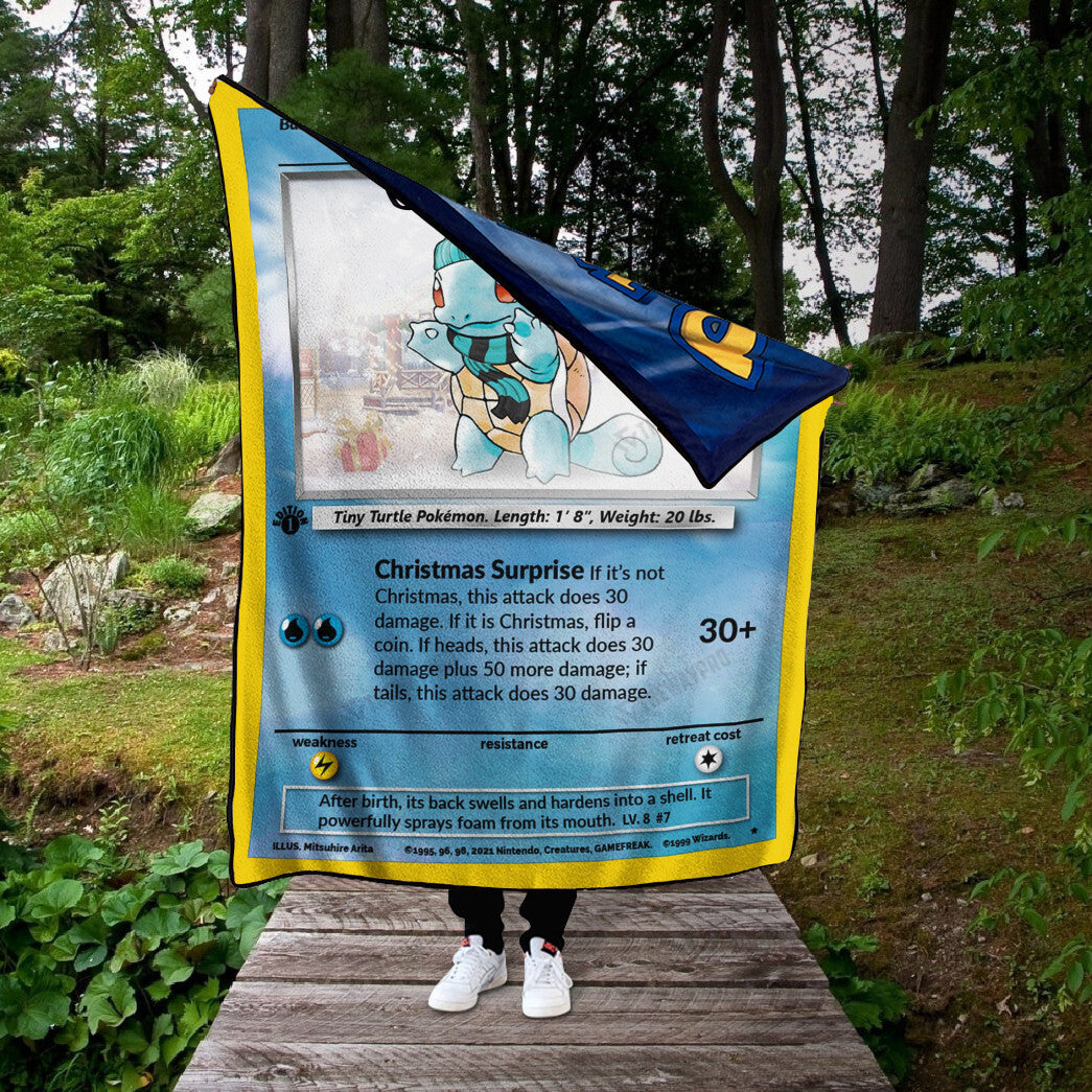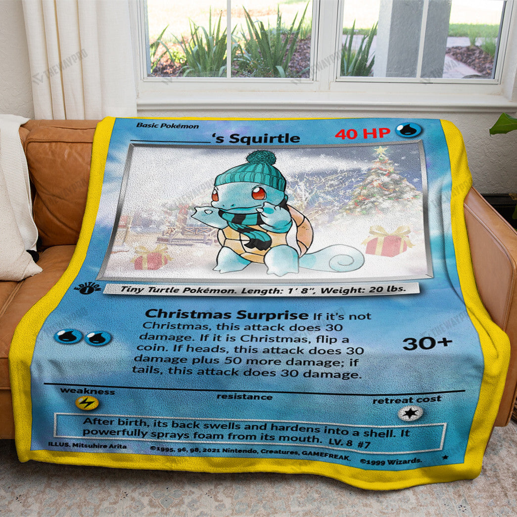 Christmas Squirtle Custom Name Gift 2-Side Printed Thicken Soft Blanket