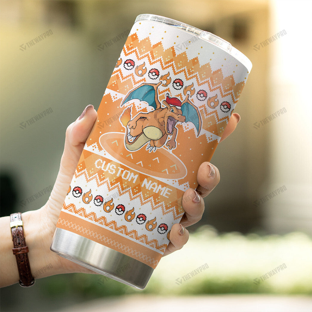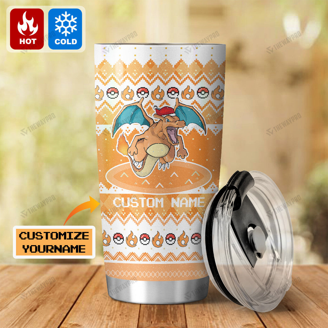 Charizard Christmas Custom Name Tumbler