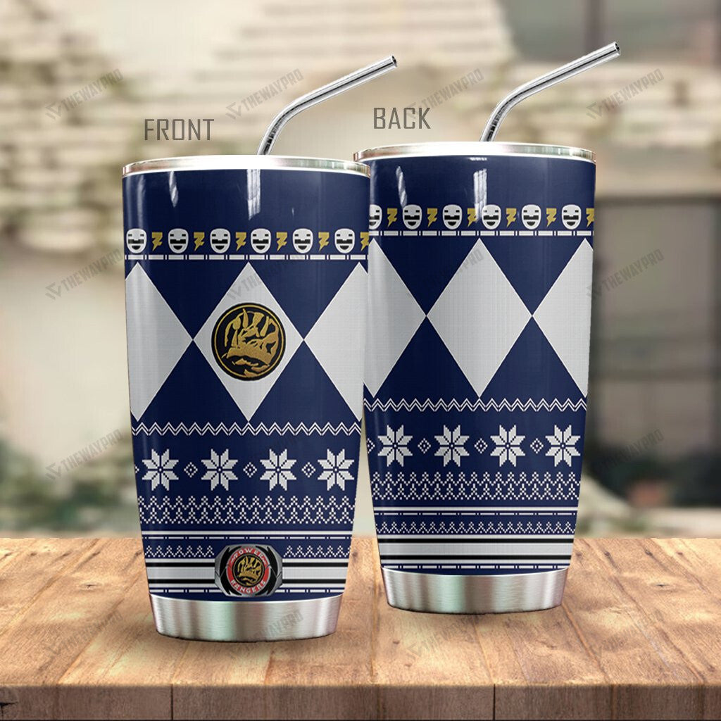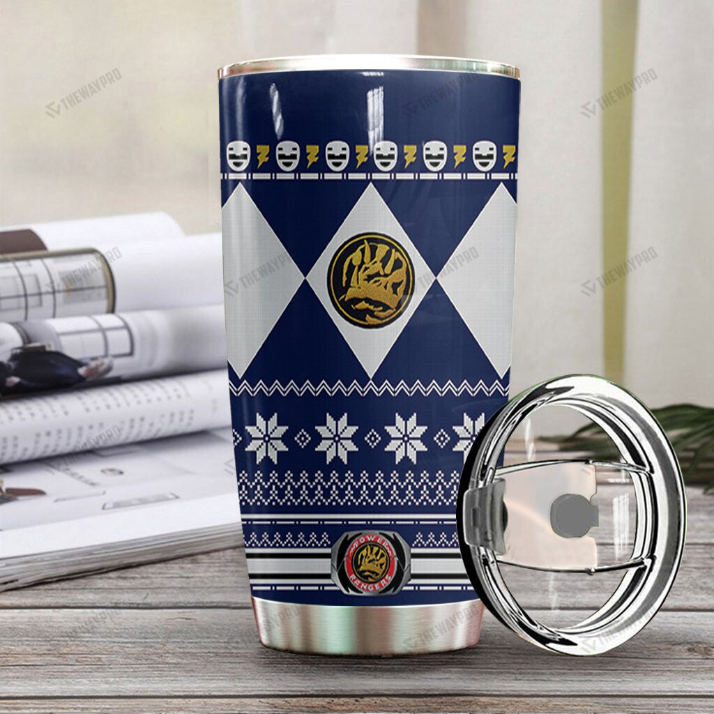 Blue Mighty Morphin Power Ranger Ugly Christmas Custom Tumbler