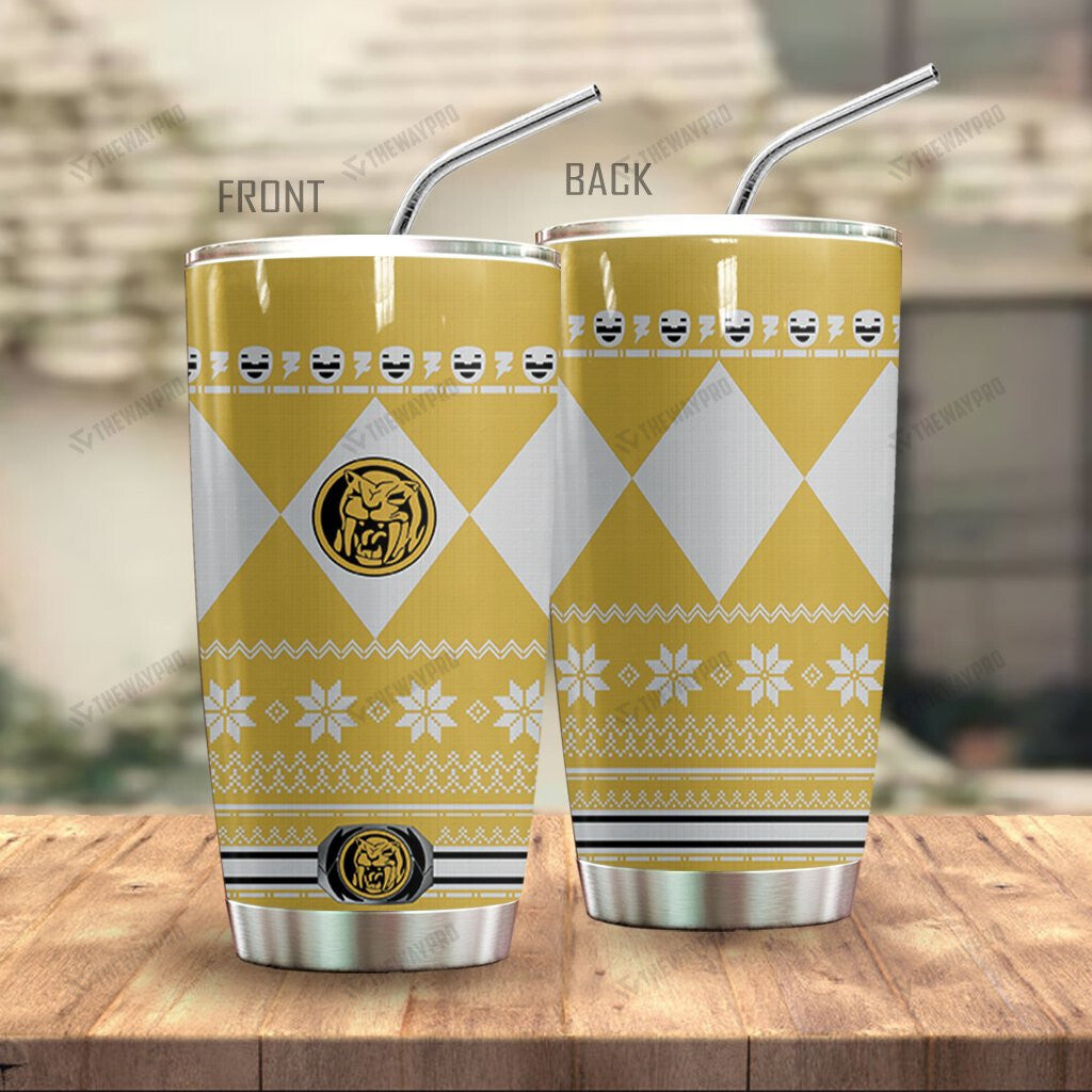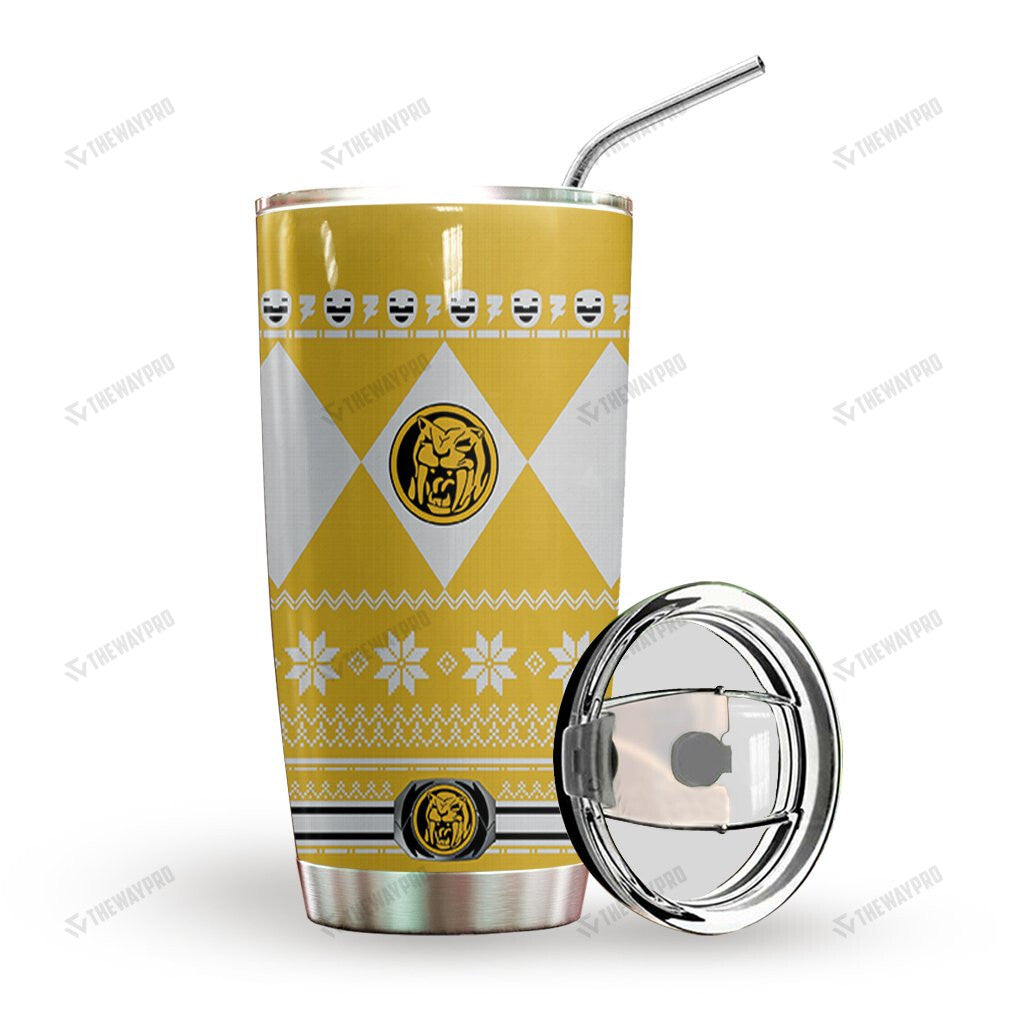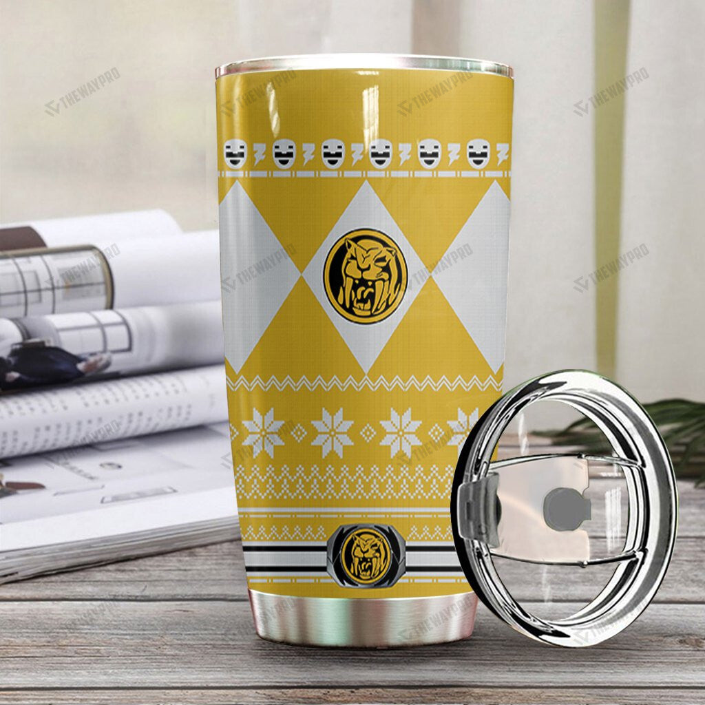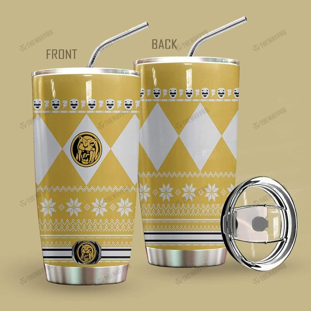 Yellow Mighty Morphin Power Ranger Ugly Christmas Custom Tumbler
