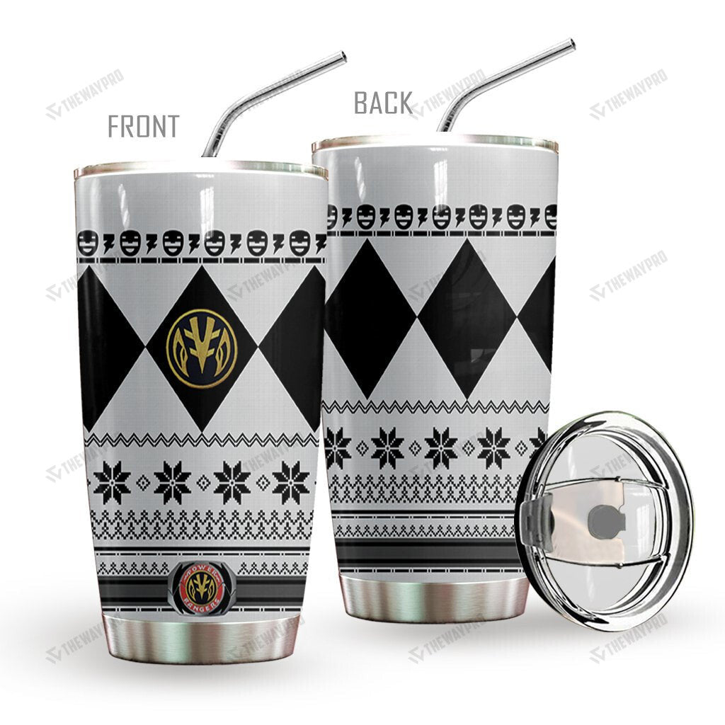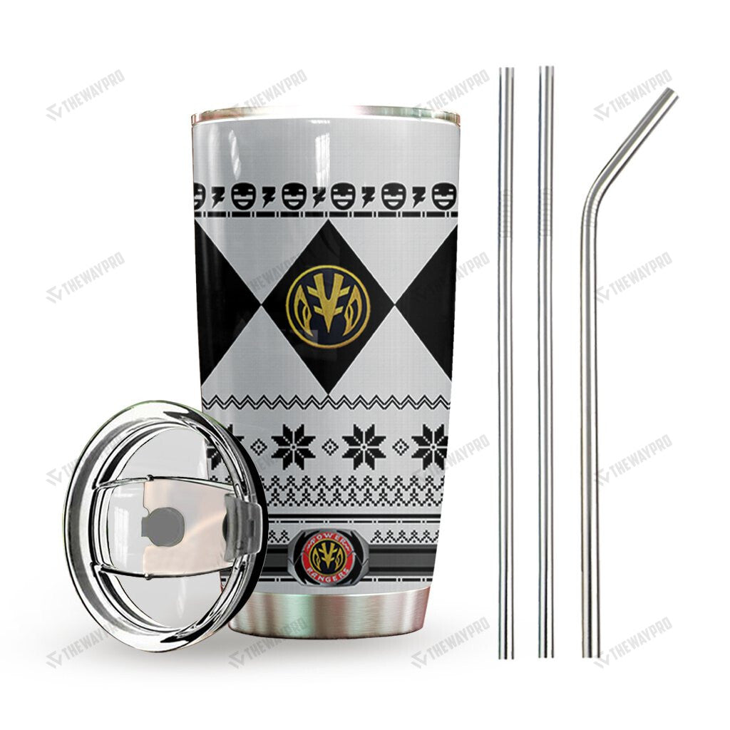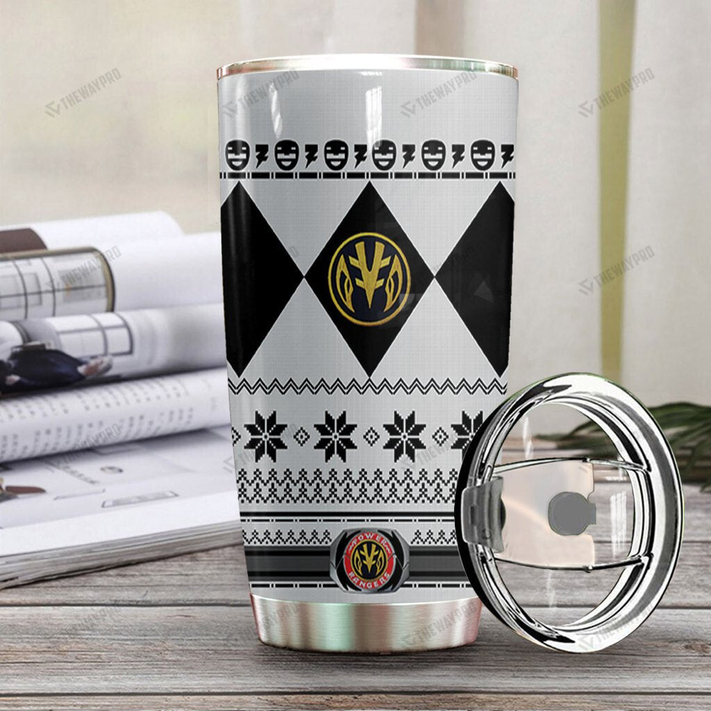 White Mighty Morphin Power Ranger Ugly Christmas Custom Tumbler