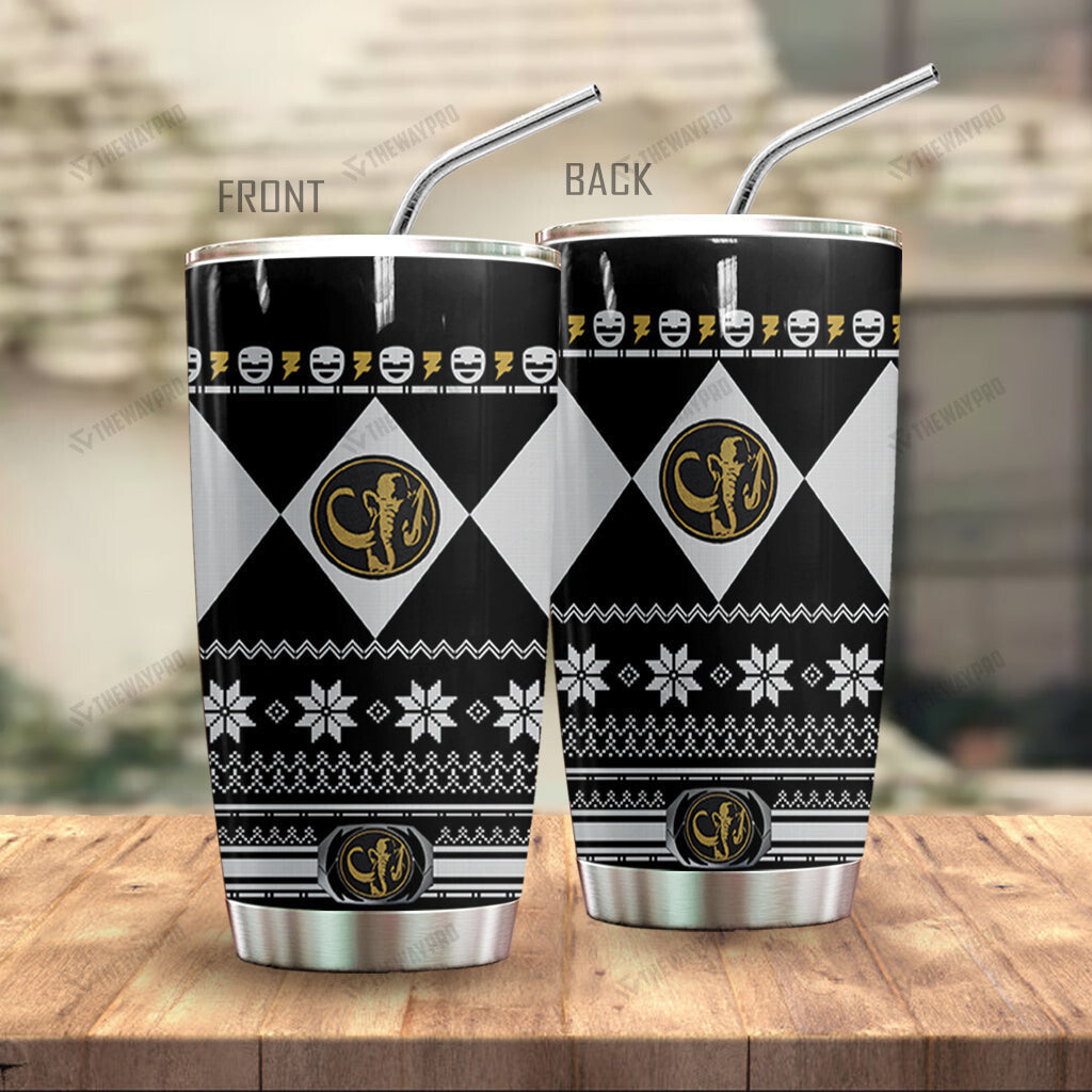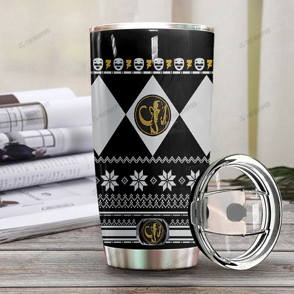 Black Mighty Morphin Power Ranger Ugly Christmas Custom Tumbler