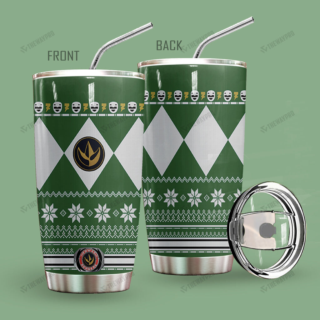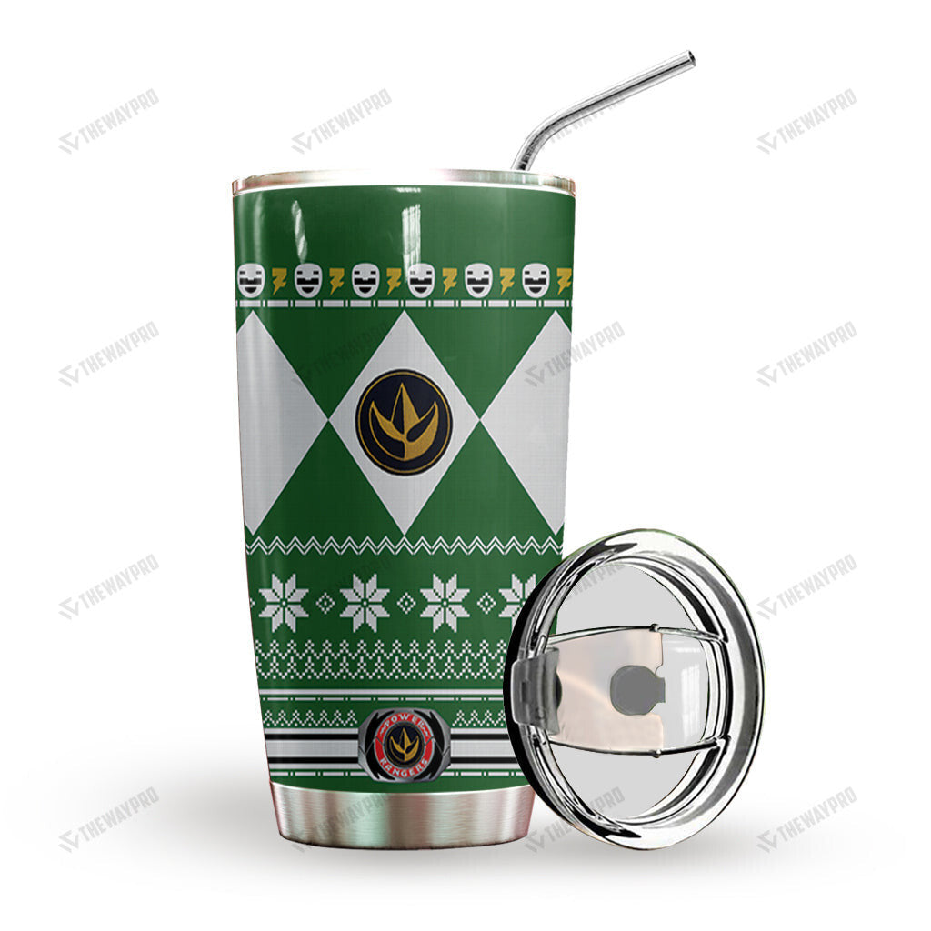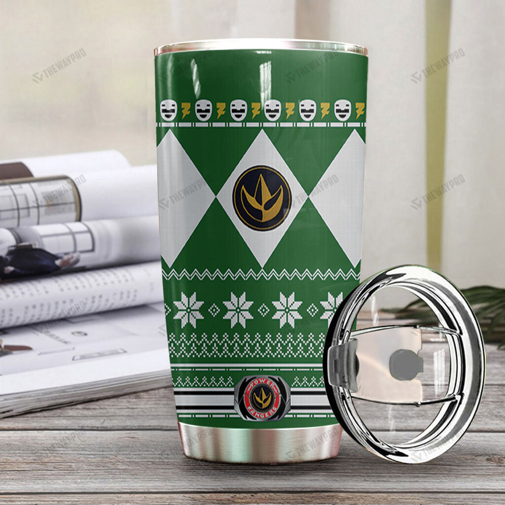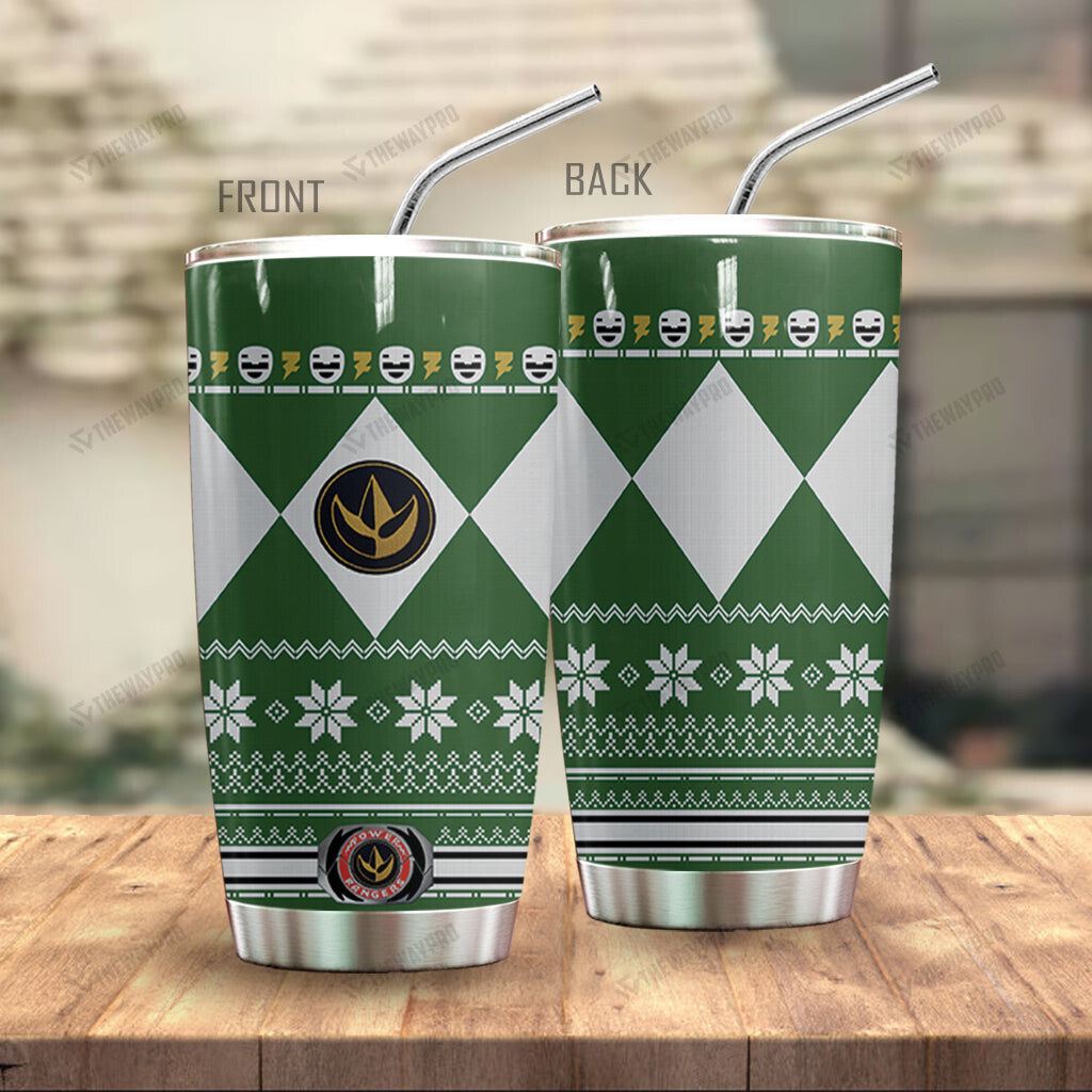 Green Mighty Morphin Power Ranger Ugly Christmas Custom Tumbler