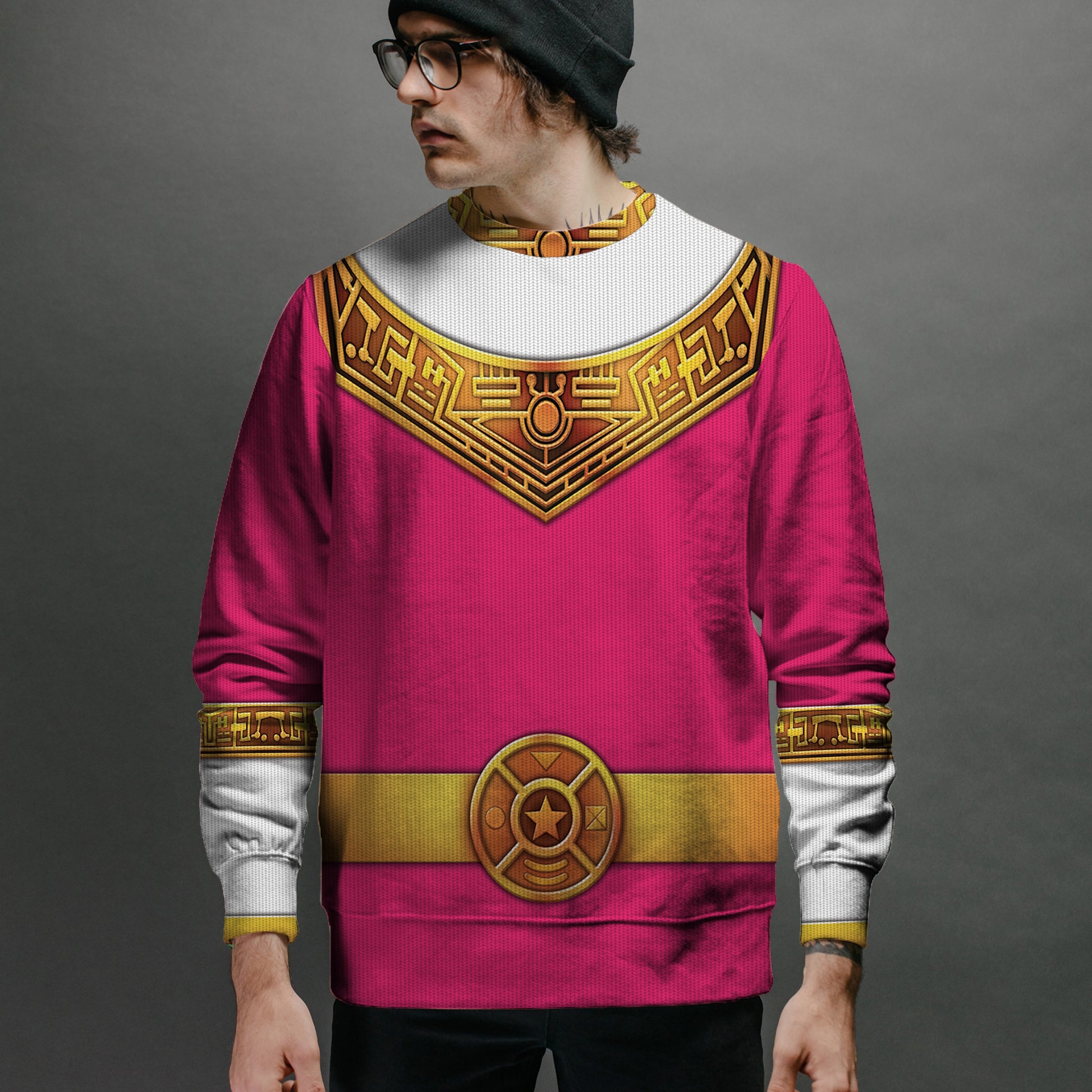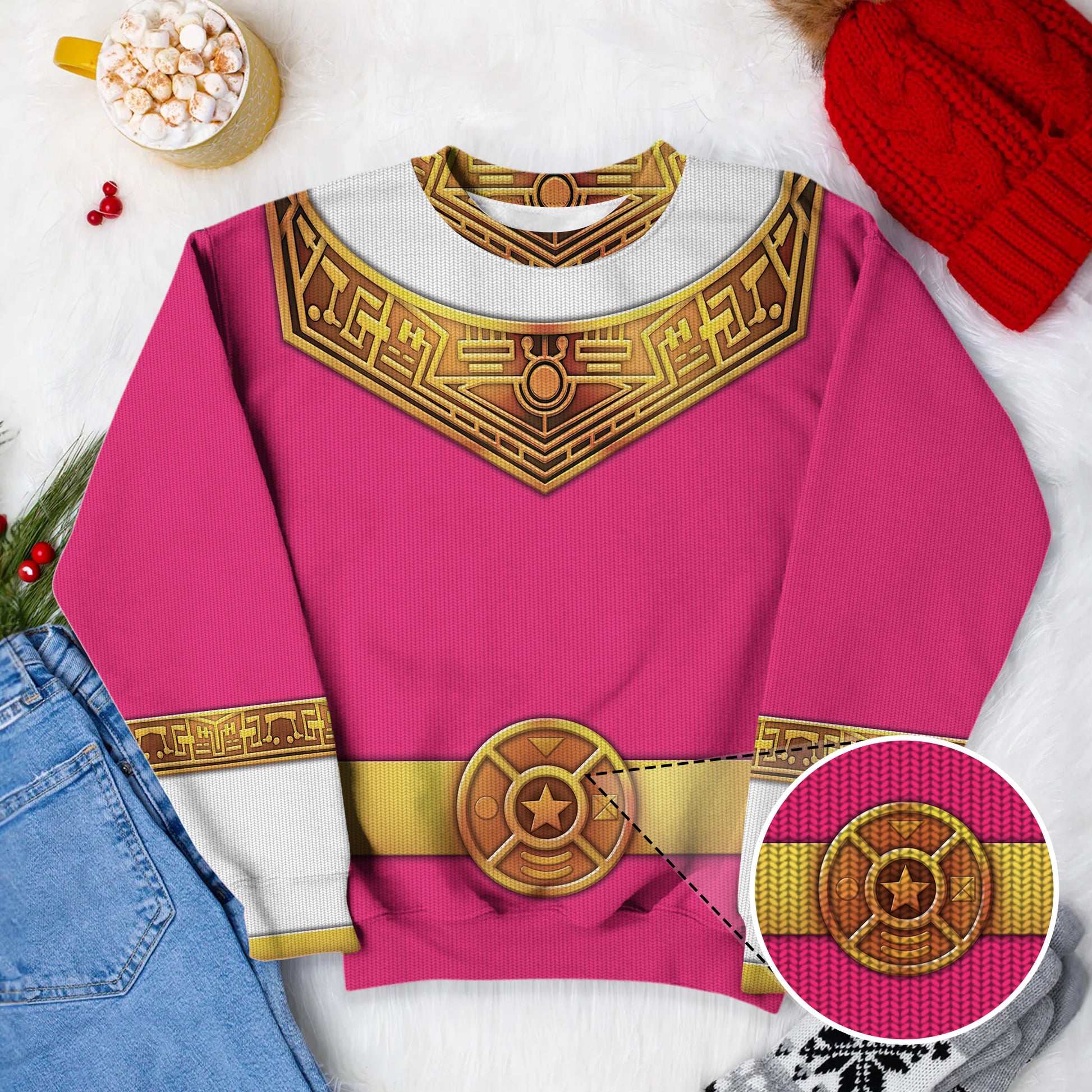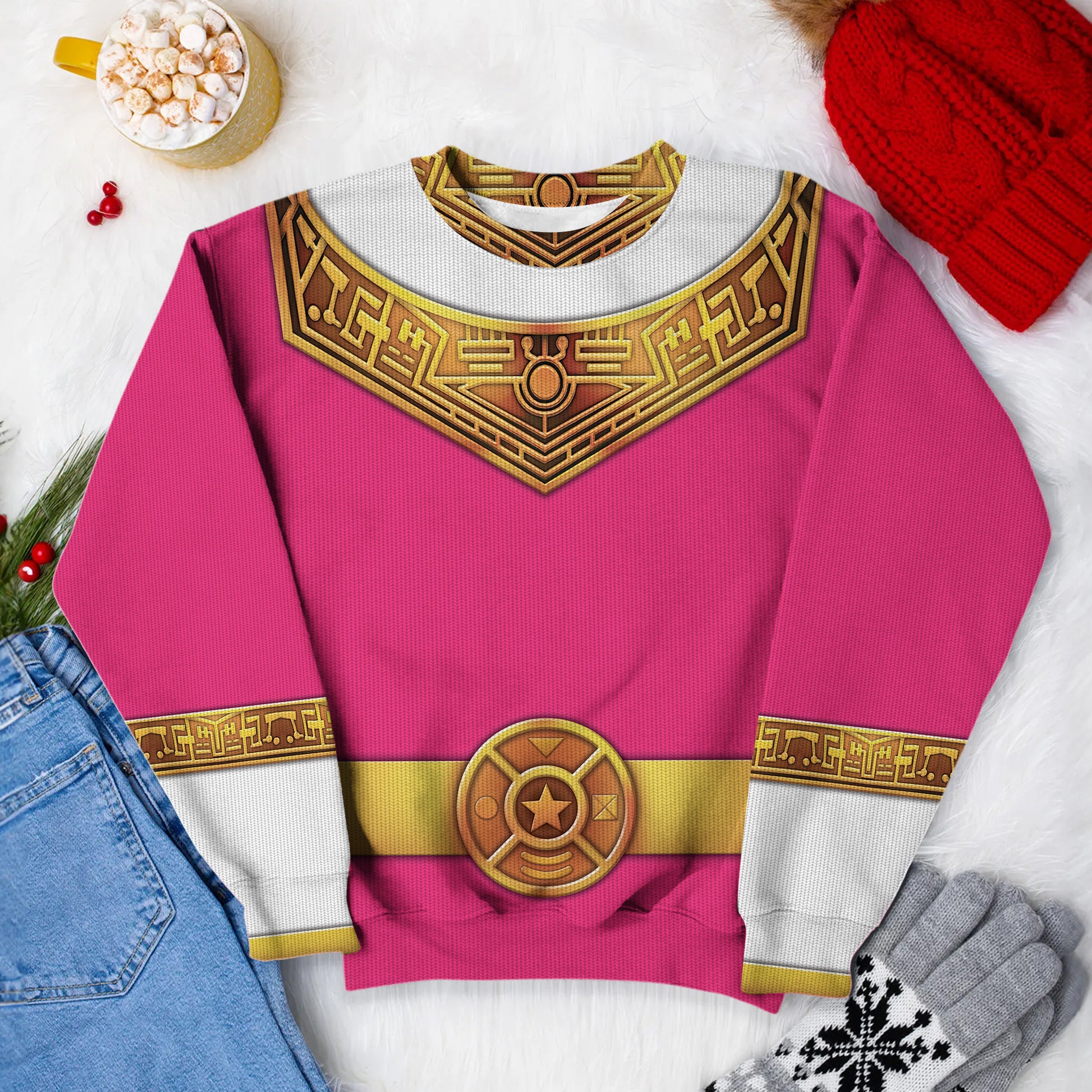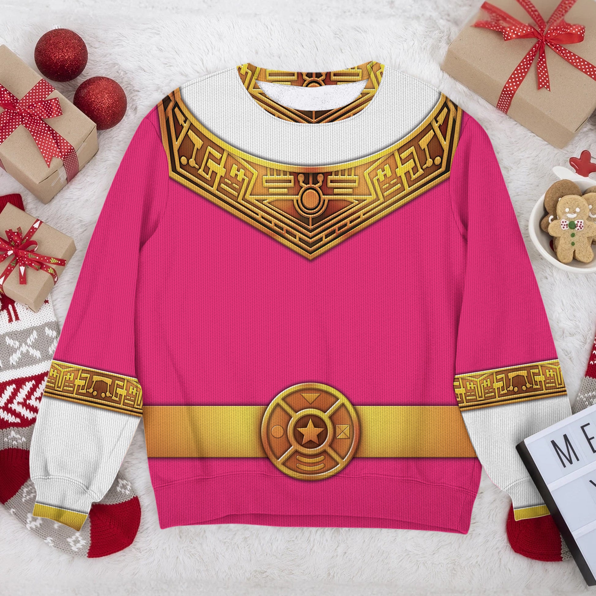 Pink Power Rangers Zeo Ugly Christmas Custom Imitation Knitted Sweatshirt