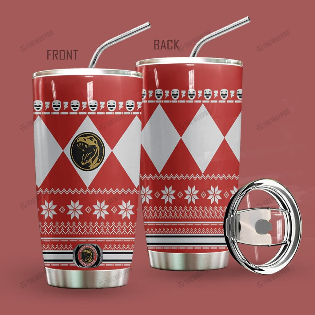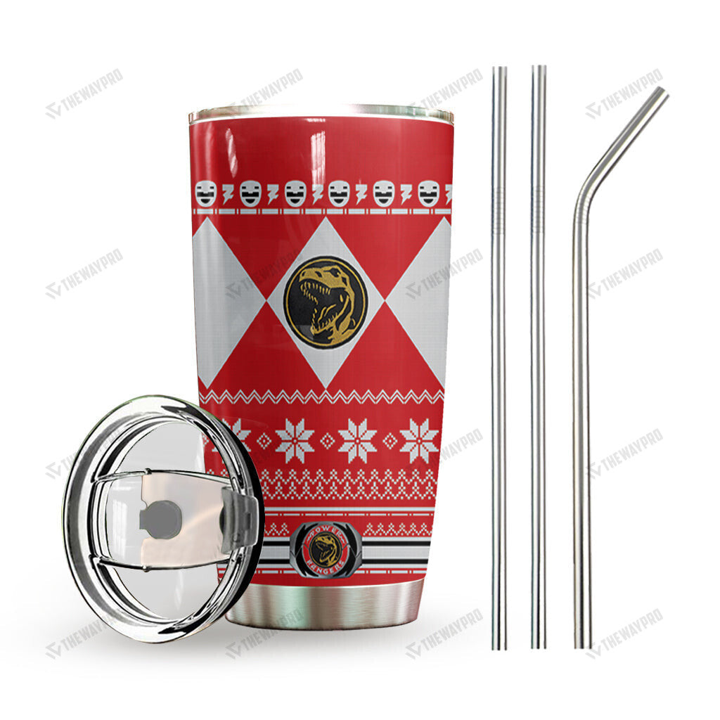 Red Mighty Morphin Power Ranger Ugly Christmas Custom Tumbler