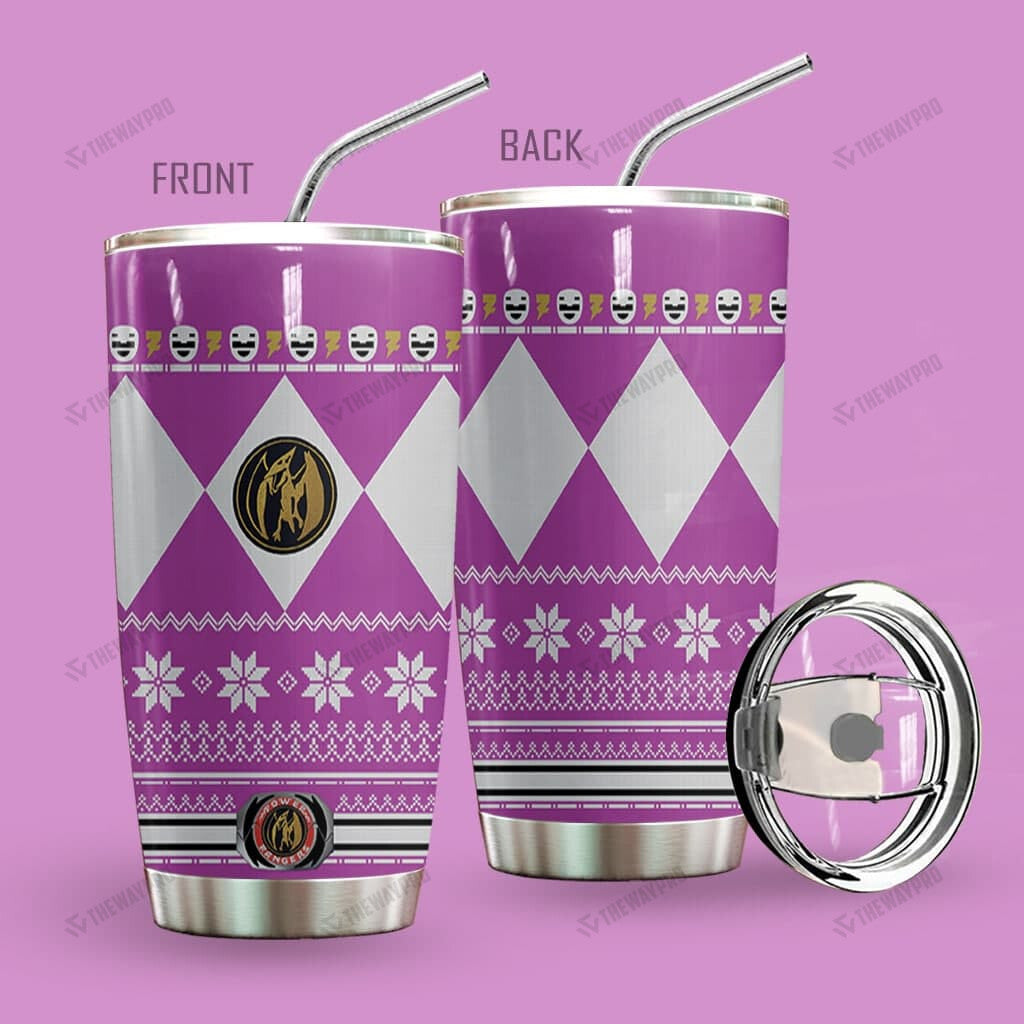 Pink Mighty Morphin Power Ranger Ugly Christmas Custom Tumbler
