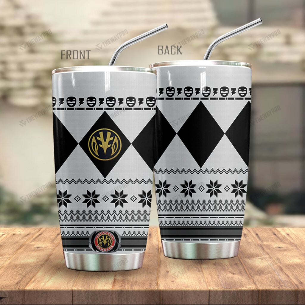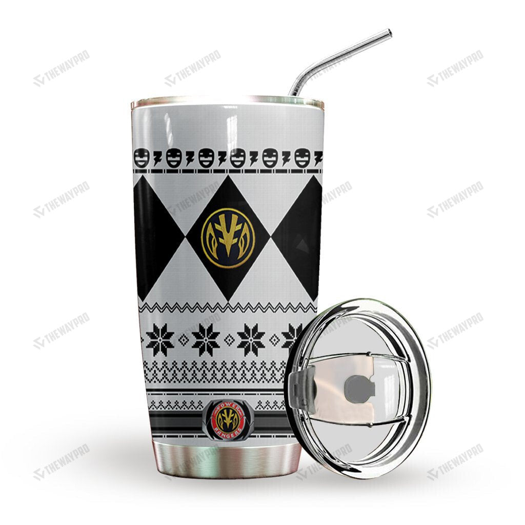 White Mighty Morphin Power Ranger Ugly Christmas Custom Tumbler