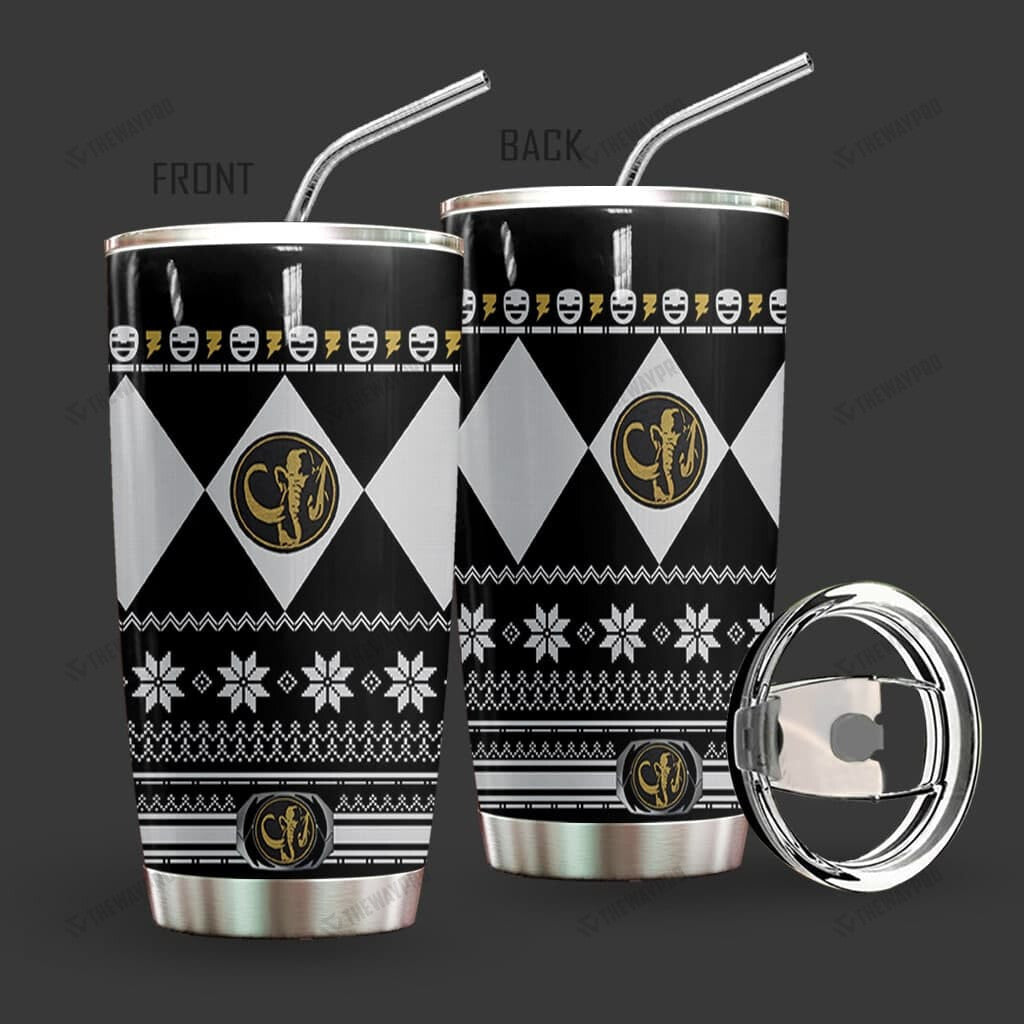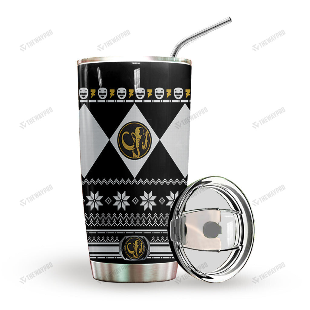 Black Mighty Morphin Power Ranger Ugly Christmas Custom Tumbler