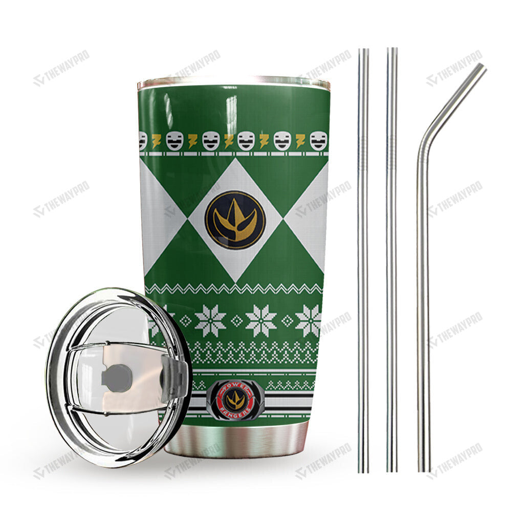 Green Mighty Morphin Power Ranger Ugly Christmas Custom Tumbler