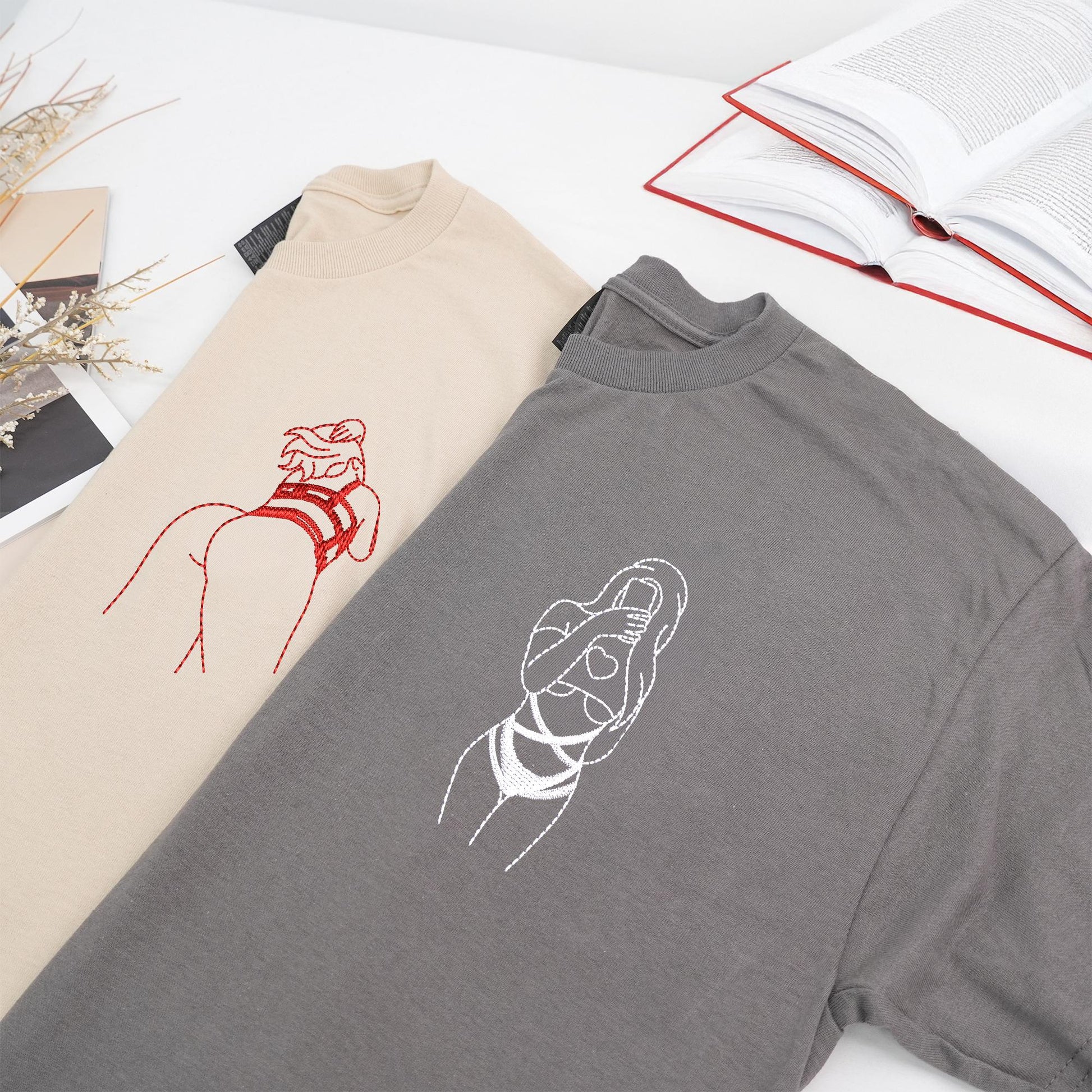 Turn your favorite spicy moment into a custom illustrated couple portrait shirt he’ll never forget.