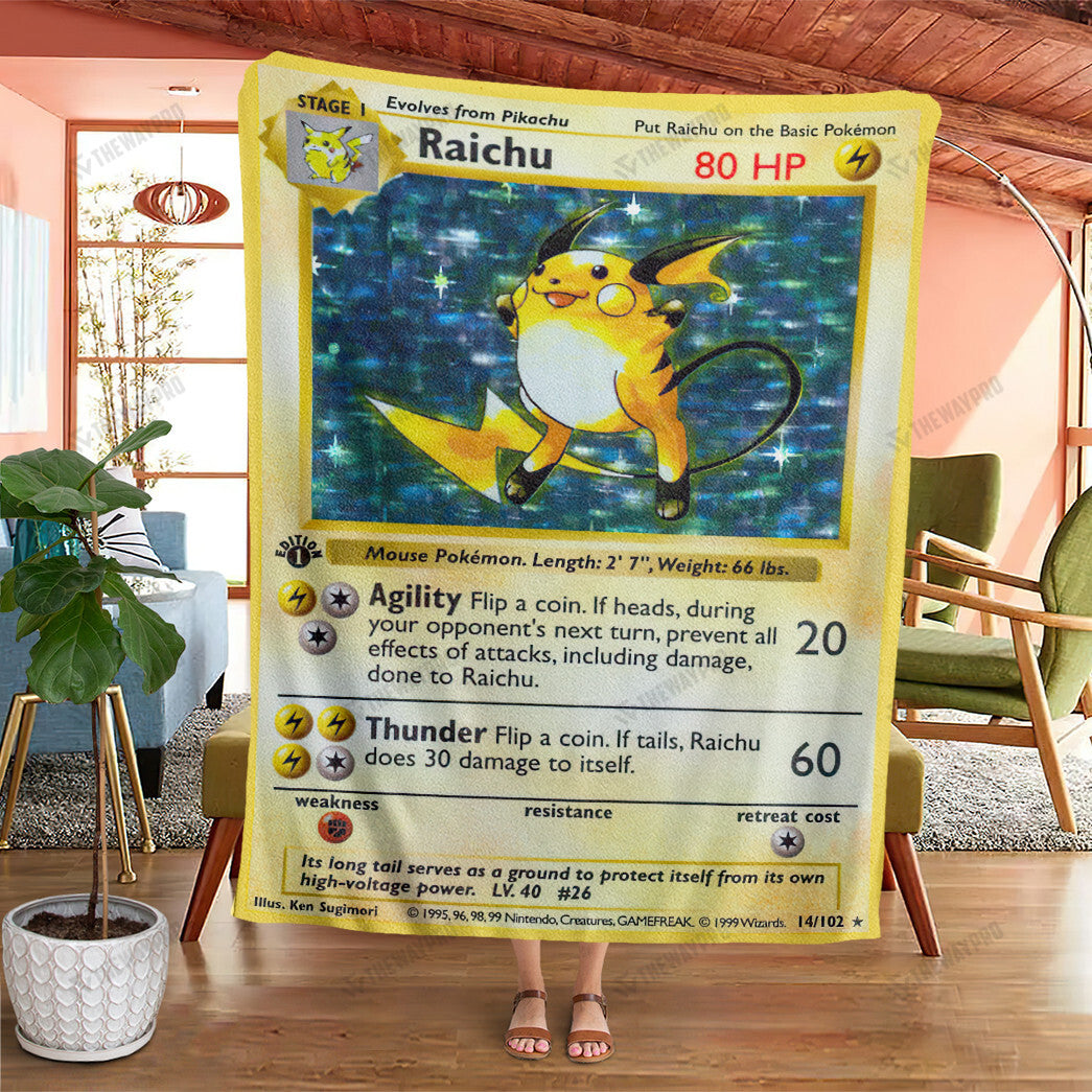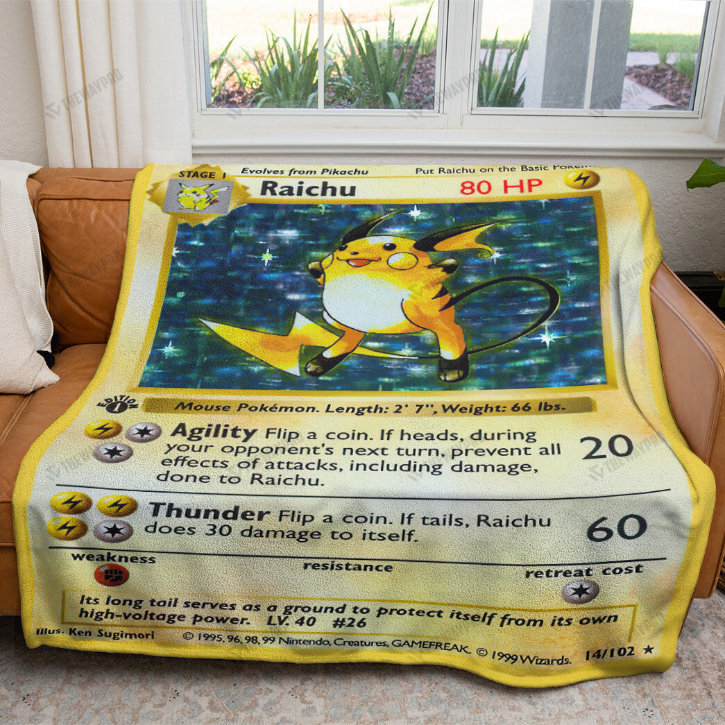 Raichu Card Custom 2-Side Printed Thicken Soft Blanket