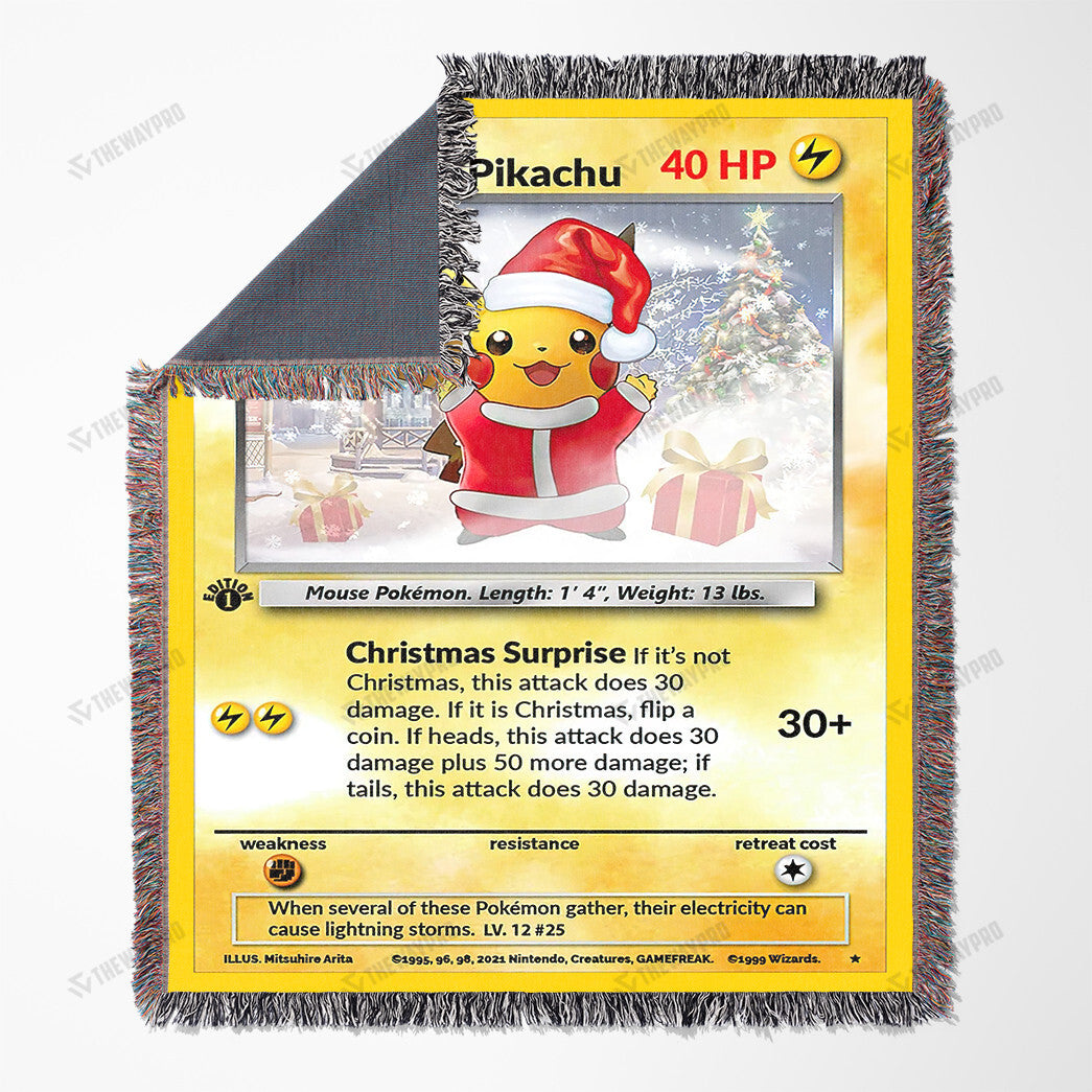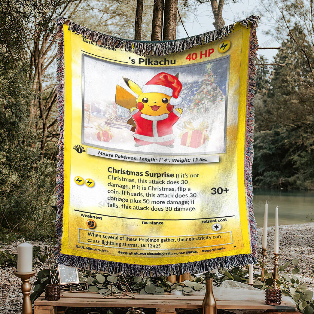 Christmas Pikachu Custom Name Gift Woven Blanket